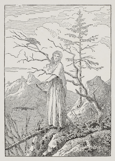 Caspar David Friedrich (German, 1774–1840), printed by Christian Friedrich, Woman with a Raven at the Abyss (Die Frau mit dem Raben am Abgrund), 1803.