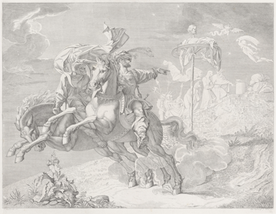 Engraving, printed chine collé. 16 1/2 × 20 3/8 in. (41.91 × 51.75 cm); plate: 15 7/16 × 20 7/8 in. (39.21 × 53.02 cm); sheet: 24 11/16 × 30 7/8 in. (62.71 × 78.42 cm). Milwaukee Art Museum, Purchase, René von Schleinitz Memorial Fund and with funds from the Ralph and Cora Oberndorfer Family Trust