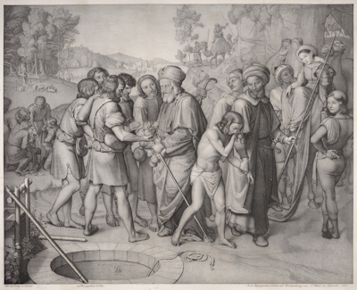 Hans Jakob Oeri (Swiss, 1782–1868), after Johann Friedrich Overbeck (German, 1789–1869), published by Johann Velten (German, 1784–1864), Joseph Being Sold by His Brothers (Joseph wird von seinen Brüdern verkauft), 1826.