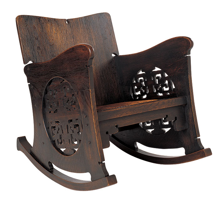 Charles Rohlfs thought of himself as an American original. This charismatic furniture designer from Buffalo, New York, emphatically denied any connection to particular movements or stylistic influences. He claimed that his individual inspiration came from the natural grain of oak and his own creative imagination. He called his work “Artistic Furniture” or, simply, “The Rohlfs Style” and, in turn, cultivated an enigmatic persona that has persisted until now.