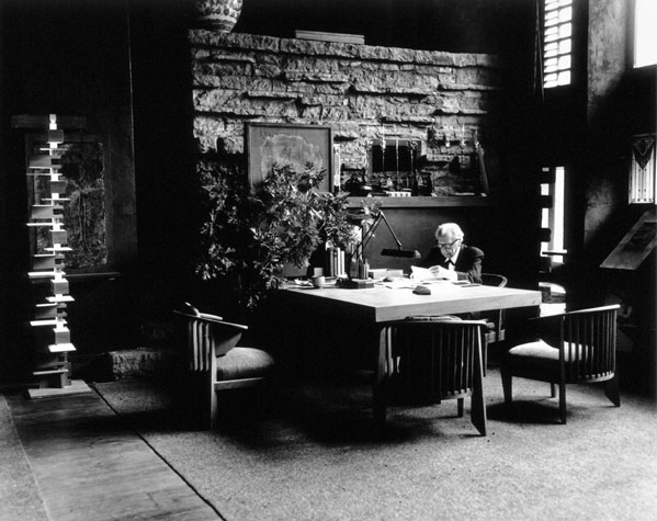 - Frank Lloyd Wright in His Workroom at Taliesin, Spring Green, WI, 1956, Photo by Ed Obma, © 2010 Frank Lloyd Wright Foundation, Scottsdale, AZ.