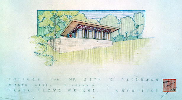 - Seth Peterson Cottage, Lake Delton, WI, 1958, © 2010 Frank Lloyd Wright Foundation, Scottsdale, AZ.