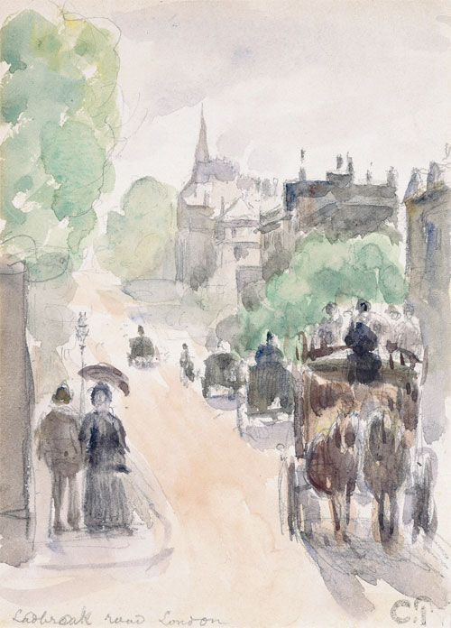 - Camille Pissarro (French, 1830–1903) Ladbroke Road, London, ca. 1890–92 Watercolor sheet: 7 1/16 x 5 1/8 in. (18 x 13 cm) Triton Foundation, The Netherlands
