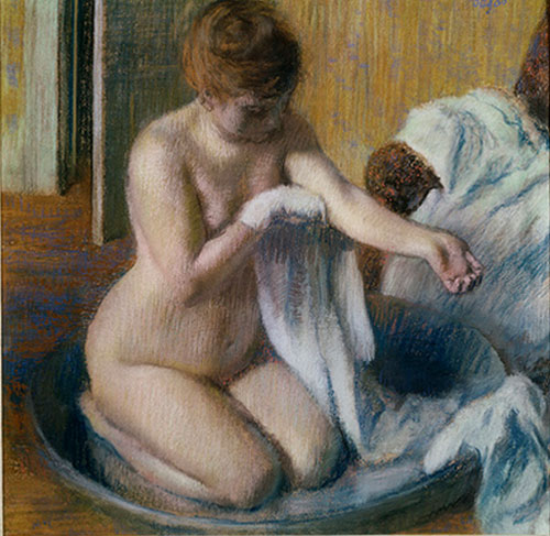 - Edgar Degas (French, 1834–1917) Woman in a Tub, ca. 1883 Pastel on paper 27 9/16 x 27 9/16 in. (70 x70 cm) Tate: Bequeathed by Mrs. A.F. Kessler 1983